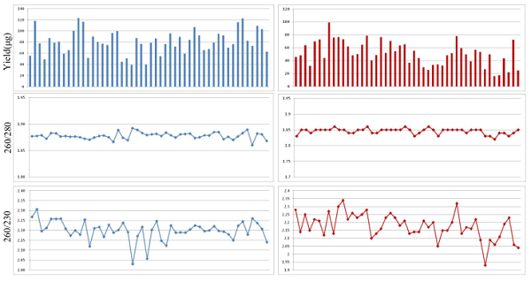 ►志昂试剂盒与其它磁珠法试剂盒提取全血样品比较
