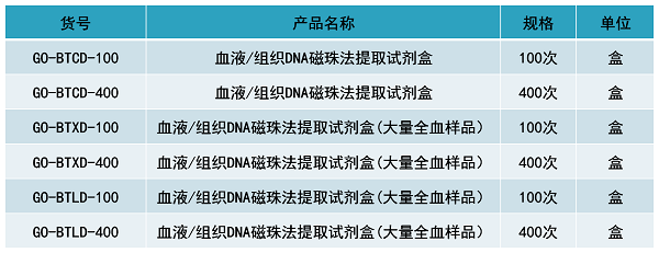 ●基于磁珠法及磁分离技术的血液/组织DNA提取试剂盒